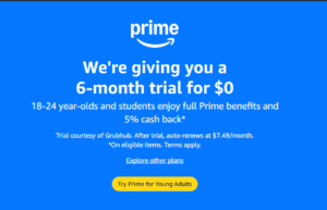 18-24 year olds and students can head over here to get a 6-month trial of Prime FOR FREE! They have a new perk this year that gives college students 5% cash back on everything they buy!