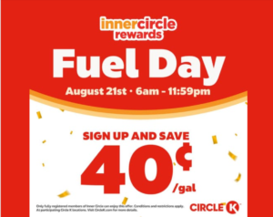 If you need ANY GAS, I highly recommend going to Circle K TODAY (8/21/25). All Inner Circle Rewards members get $.40 off EACH gallon of gas! If you have a 20-gallon tank that’s a sweet $8 off! If you’re not an Inner Circle Rewards member yet, head over here to sign up (for free).