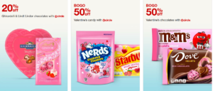 Get a head start on Valentine’s shopping at Target this week with DEALS! Head over here to get 20% off Ghiradelli or Lindt Chocolates (includes heart-shaped boxes), BOGO half off Dove and M&M’s chocolate bags, BOGO half off Valentine’s candy, and more!