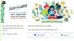 If you like to read, head over here to join the Maricopa County summer reading program called “Color Our World”. It’s happening at all Maricopa County libraries and is open to readers of all ages (0-100+). You earn points by reading (one minute read equals one point).